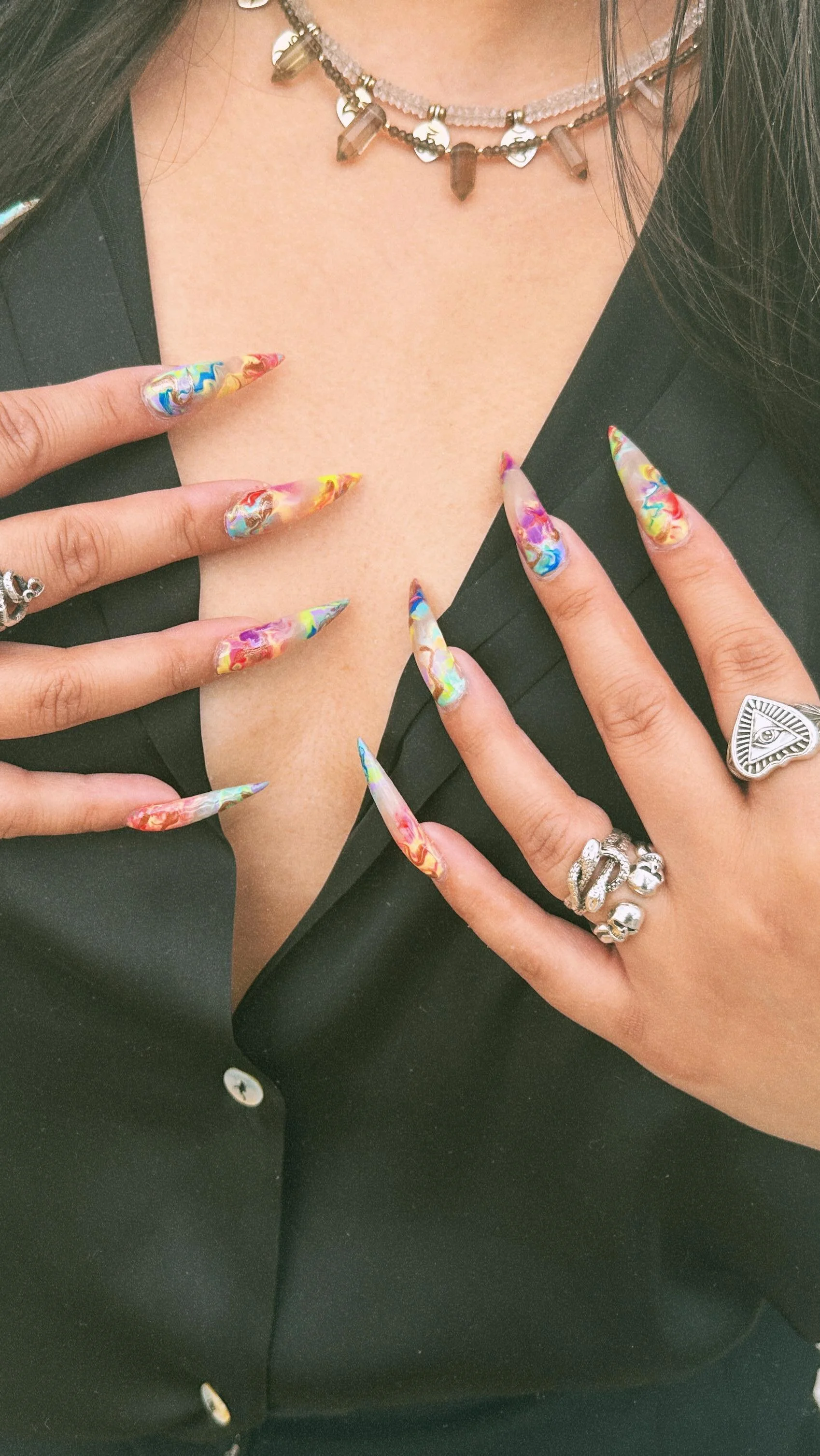 Nails are a form of expression. Whether it be the newest and coolest trendy nails, a sophisticated french tip, or a clean minimal solid colour set. Nails come in all shapes and sizes. Donβt overthink it. Love what you love and always have fun with it. The rest will take care it itself